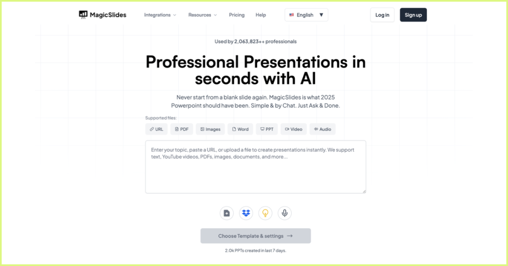 This AI PPT generator takes diverse inputs—topics, YouTube URLs, PDFs, or Word documents—and converts them into slides.